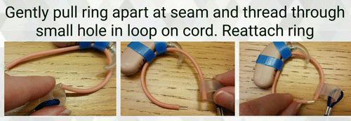 There is also a small hole in the plastic loop to allow you to connect in a hucki retainer (purchased separately) which helps keep the hearing aid on the ear - should you want to use both a hearing aid retainer and this retention cord together.